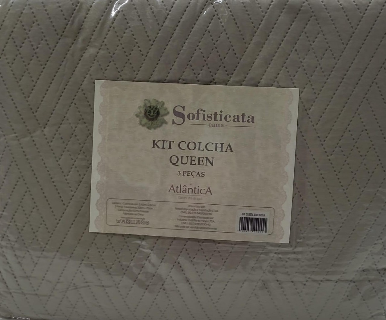 Colcha 3 Peças Sofisticata Amendoa Atlantica