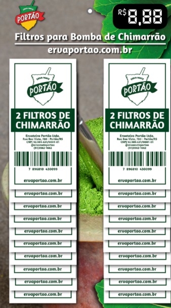 Filtro Bomba Chimarrão C/ 20 Erva Portão