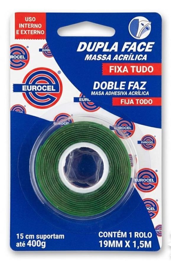 Fita Dupla Face Massa Acrílica 19mm X 1,5m EUROCEL